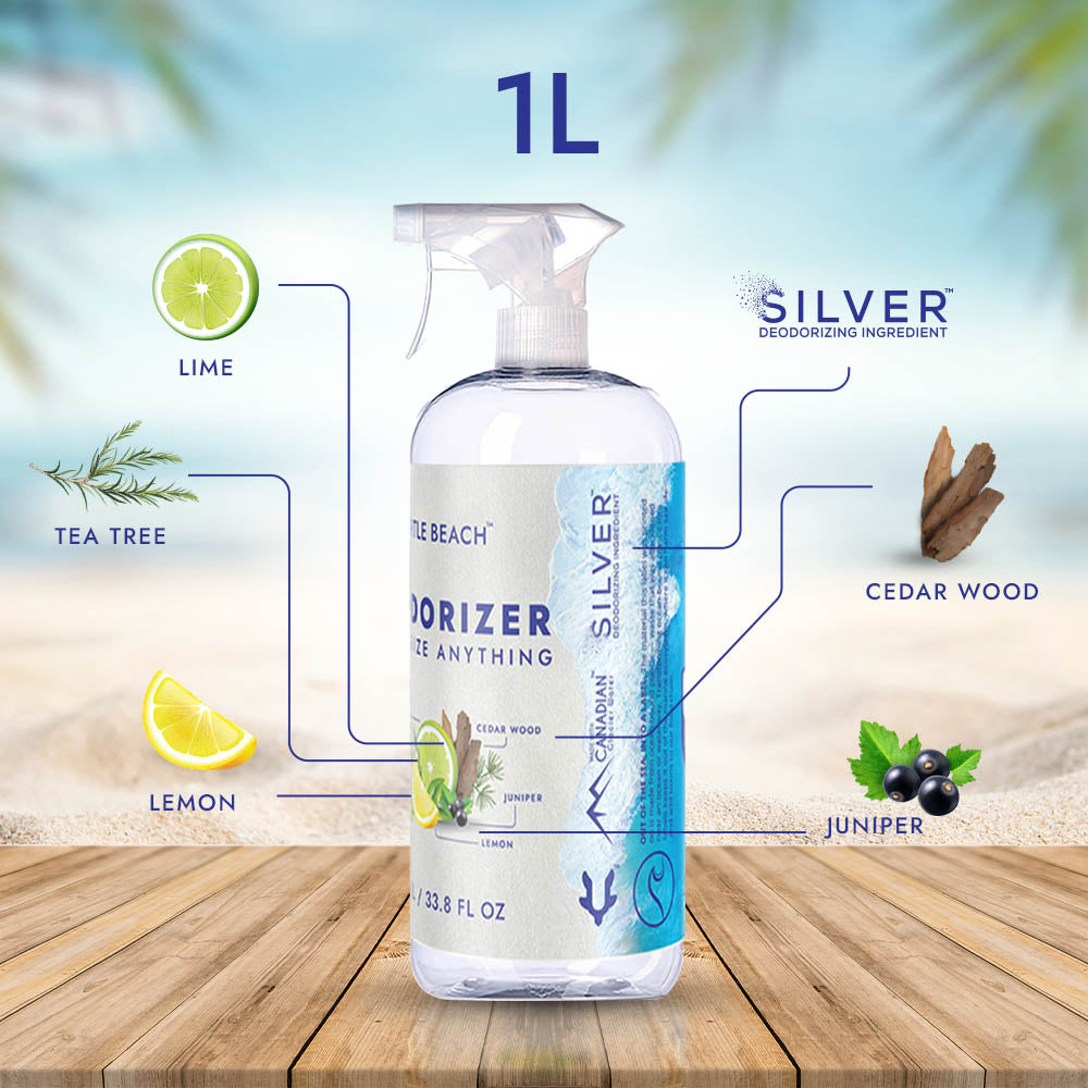 Unleash a wave of freshness with Turtle Beach deodorizer! Natural essential oils and silver effectively neutralize odors at the source. The signature blend is made with Lemon, Lime, Tea Tree, Cedar Wood and Juniper.